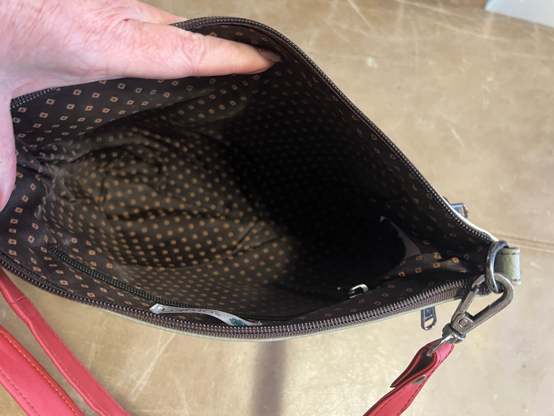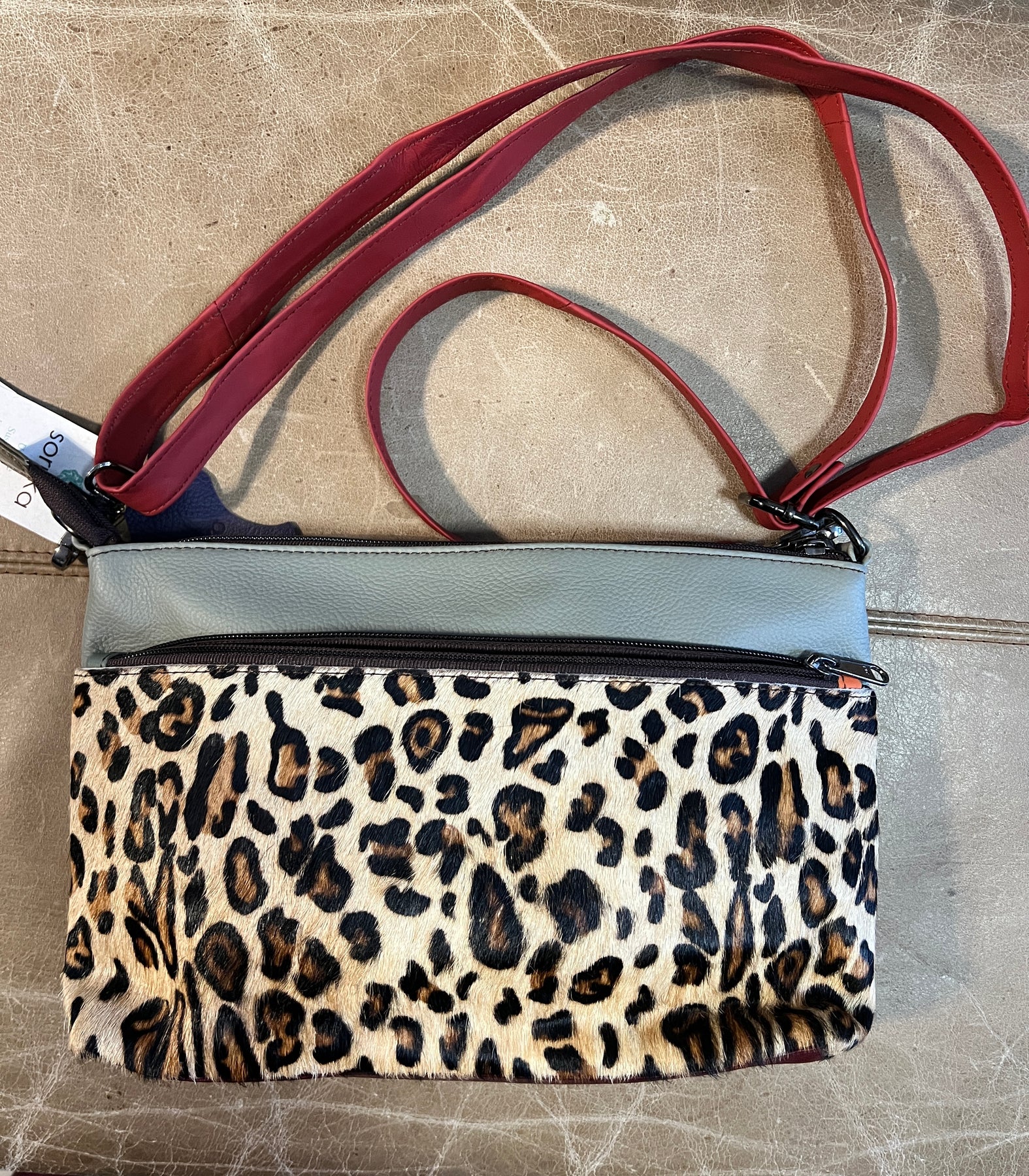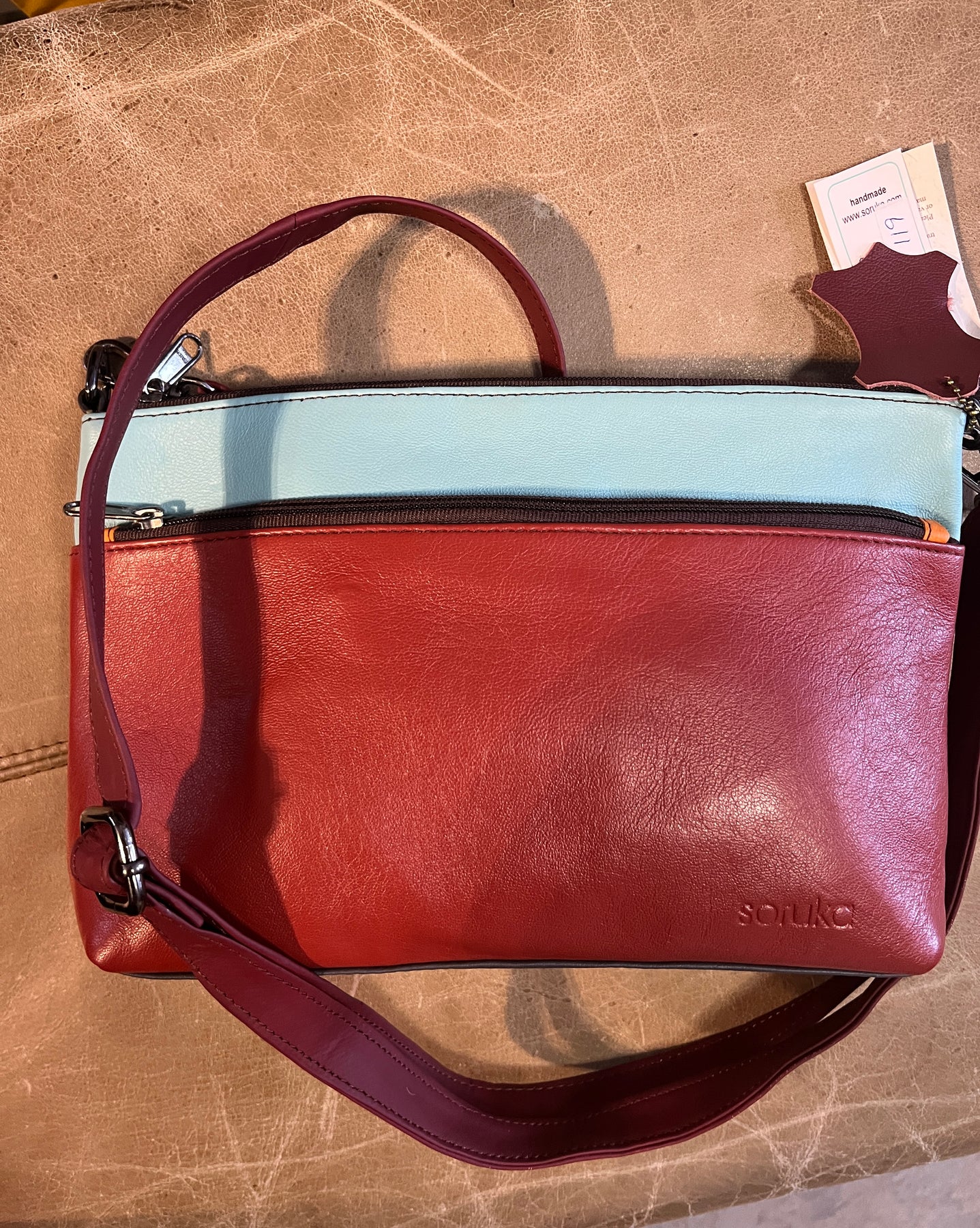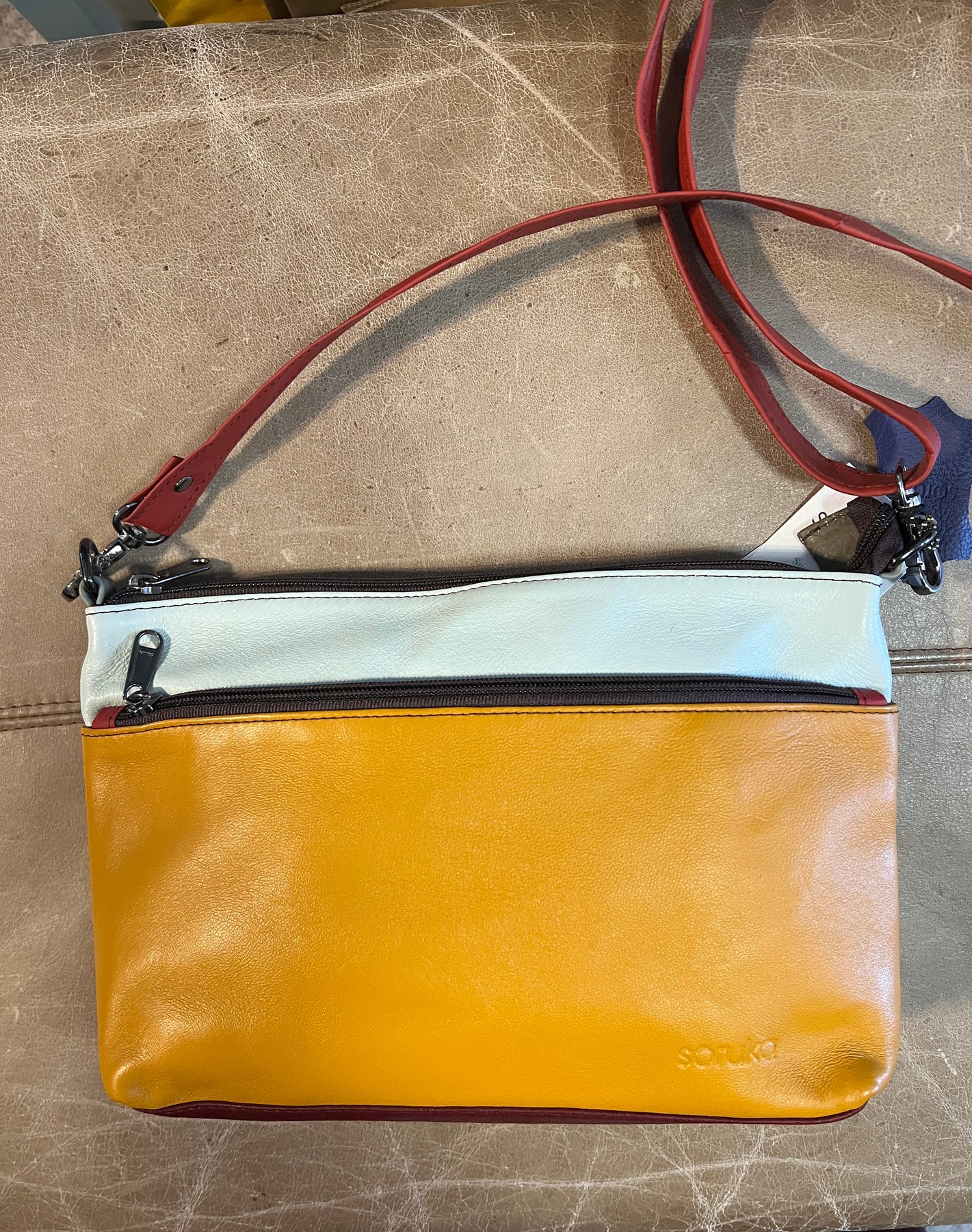 Stay organized with two front zip pockets and a generously sized main compartment complete with an interior zip pocket for valuables. The adjustable strap adapts to your lifestyle, whether worn crossbody or on your shoulder.