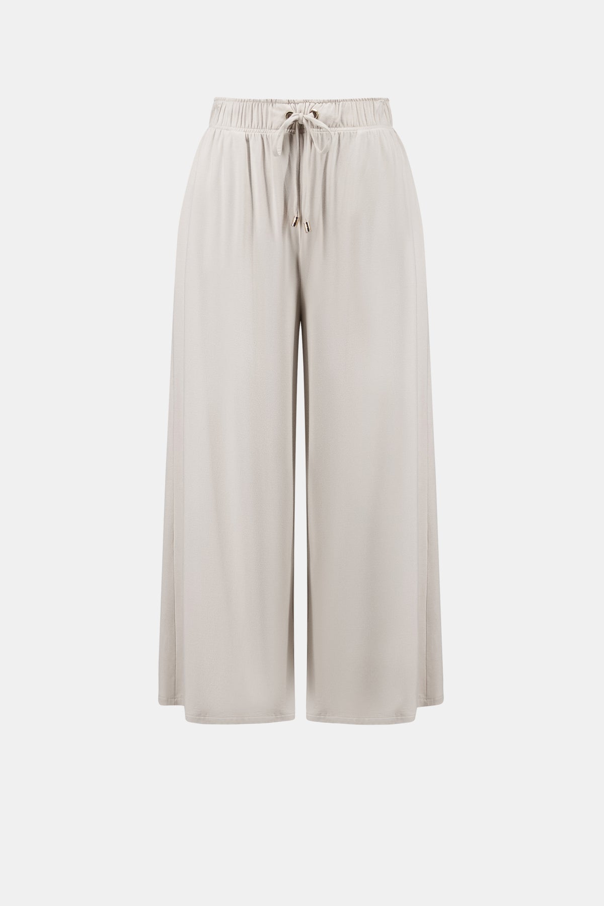 These easy pull-on culottes are crafted from a soft jersey knit that drapes beautifully while keeping comfort front and centre. The wide leg and cropped length create a relaxed, modern silhouette, while subtle gold rivets and front tie cords add just enough polish to elevate an everyday essential. Comfortable, flattering, and endlessly wearable.